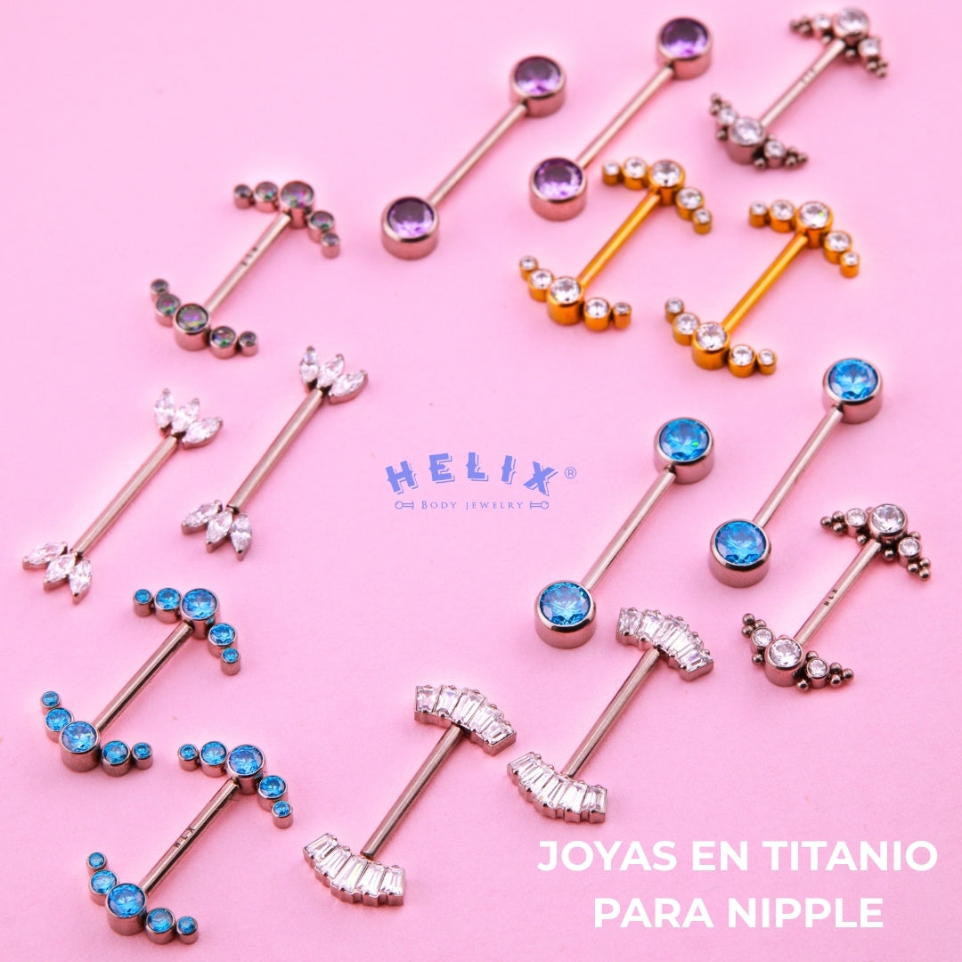 El titanio ASTM F‑136 es ideal para pieles sensibles y perforaciones iniciales. Este material médico es hipoalergénico, resistente a la corrosión y ofrece la combinación perfecta de seguridad y comodidad.