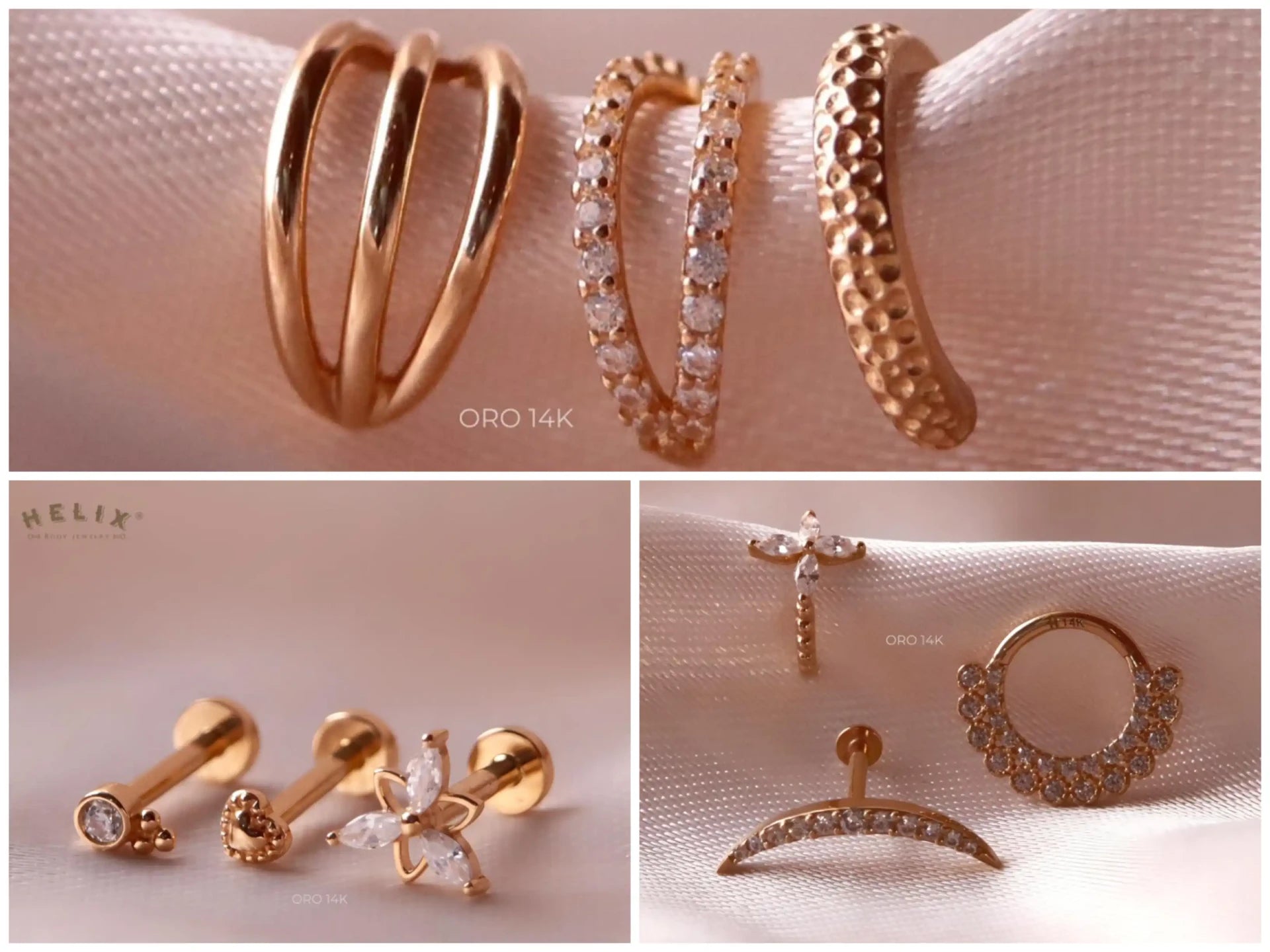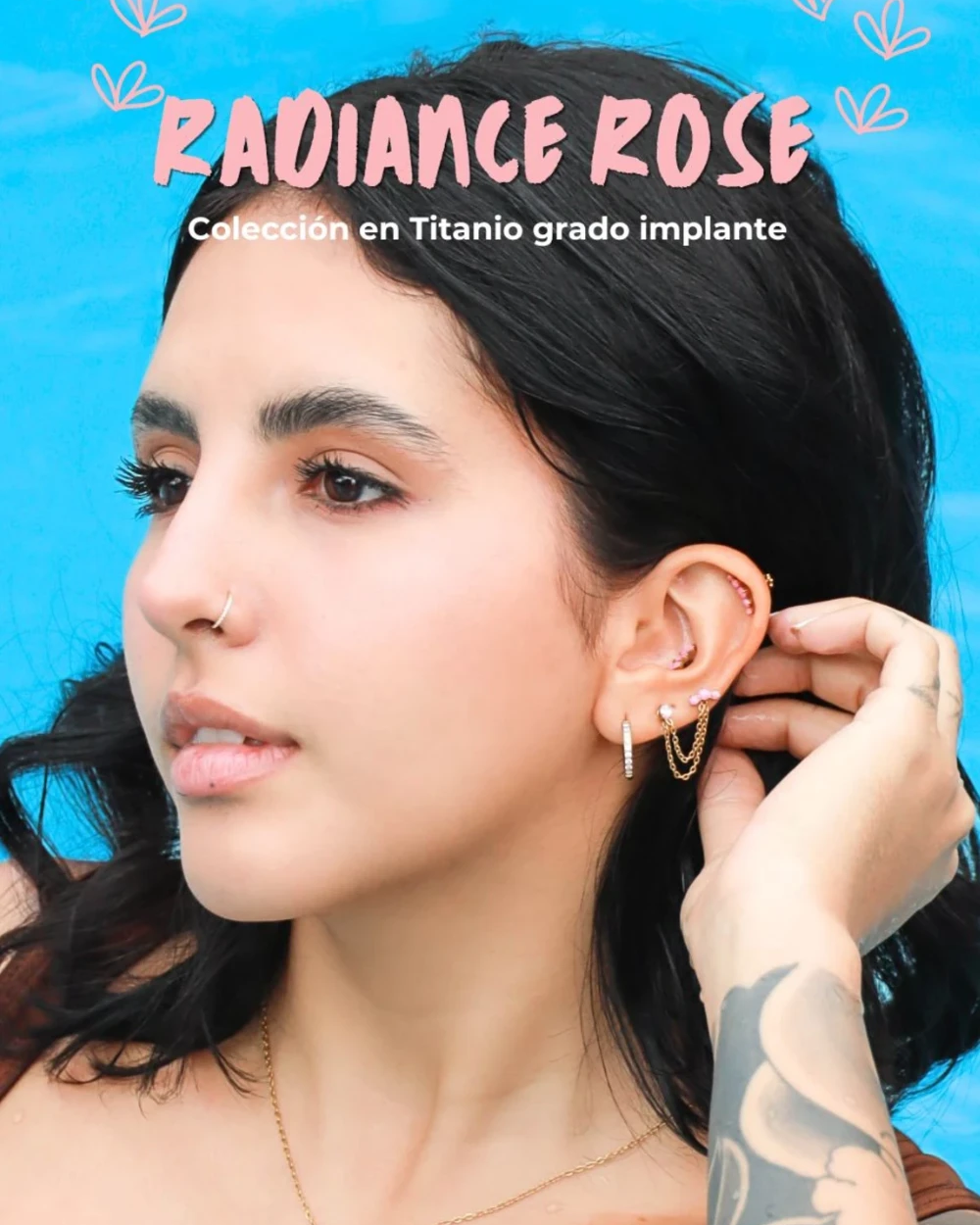 Explora piercings de oreja, piercings de nariz, joyas en oro 18k y titanio grado implante. Encuentra diseños exclusivos para cada estilo.